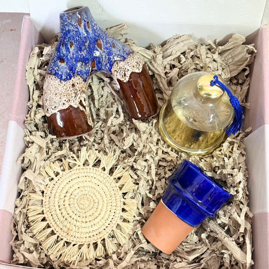 This box set highlights the authenticity and expertise of Moroccan artisans through a selection of unique objects combining aesthetics and utility. Each piece has been carefully crafted, incorporating natural materials and artisanal techniques passed down from generation to generation.