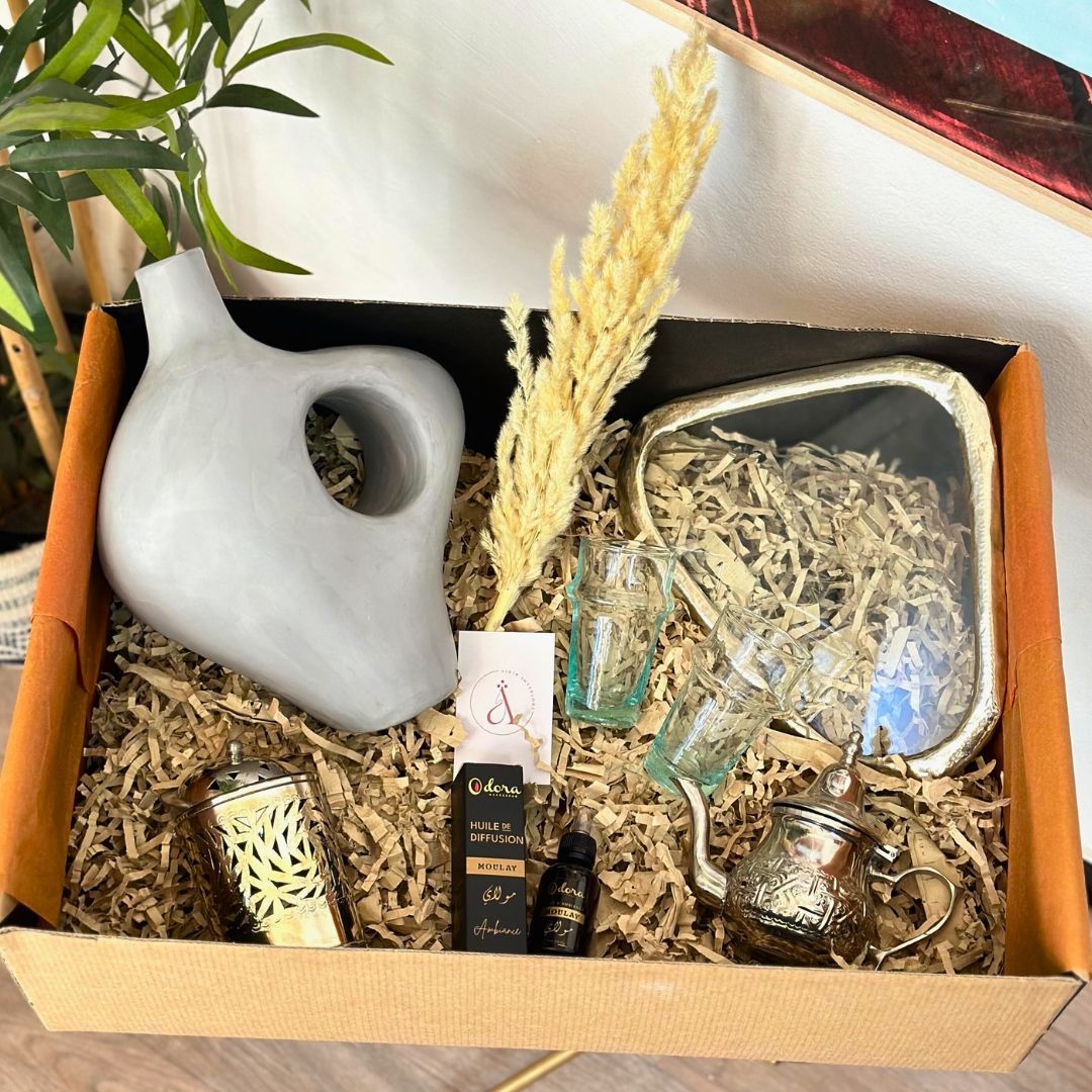 Give the gift of total immersion in Moroccan craftsmanship with the Azegzaw XL artisanal gift box. Composed of exceptional pieces, this set includes: