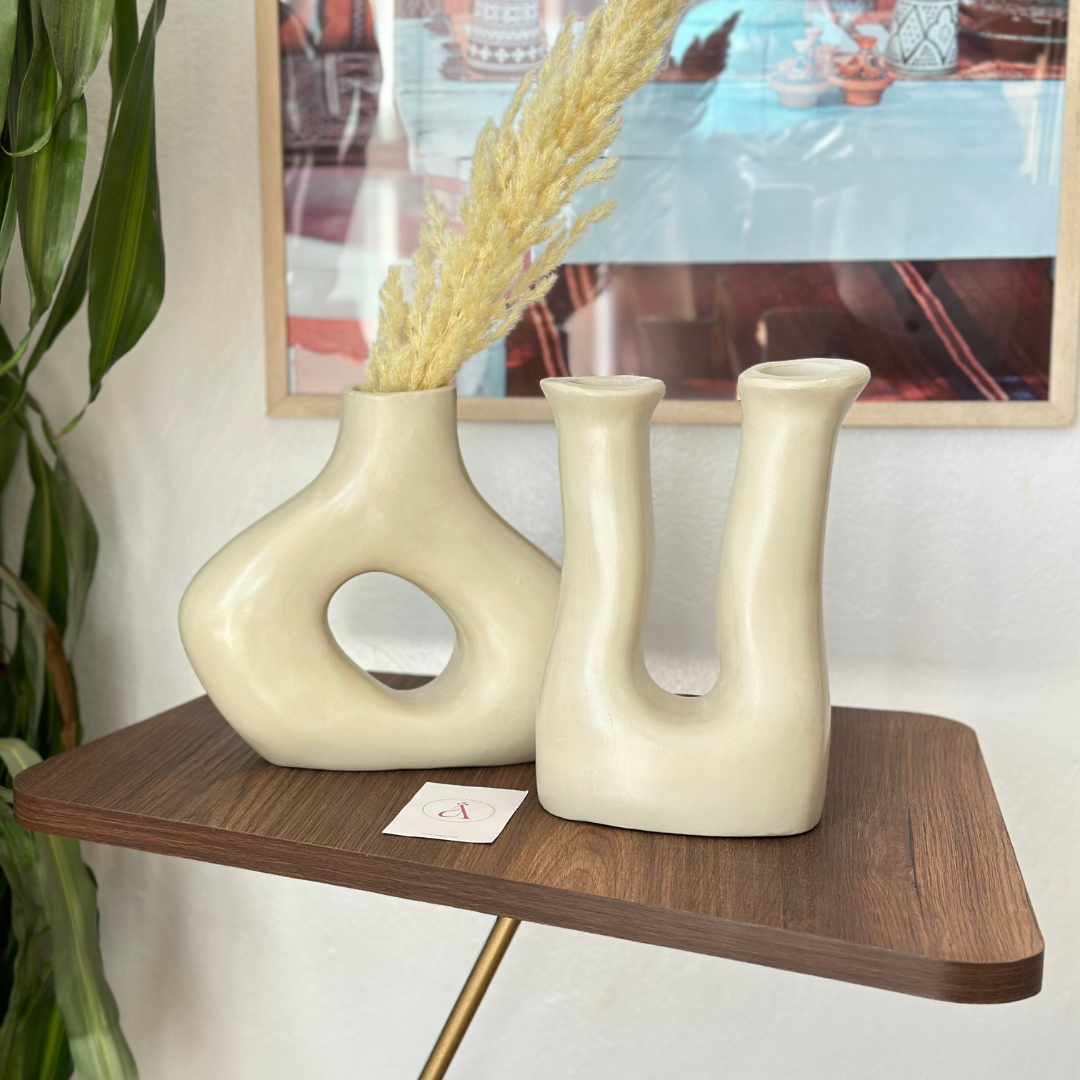 This decorative pack, composed of 2 handmade matte cream vases, is perfect for adding an artistic touch to your interior. The vases are unique and carefully made, adding a touch of originality to your decoration. Ideal for any type of space, this pack is a safe bet for design lovers.