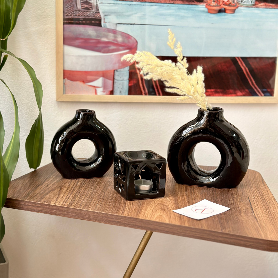 Our glazed pottery vase embodies the beauty of craftsmanship. Designed with passion, it subtly combines pottery with glazed paint. Add a touch of timeless elegance to your decor with this unique vase.